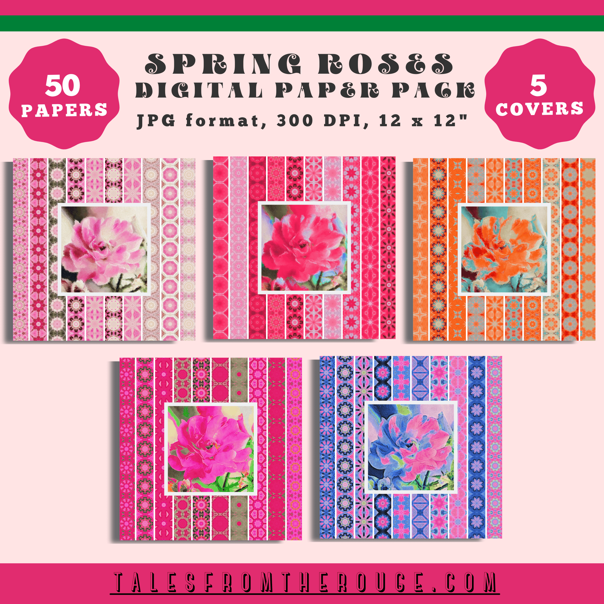 If you upgrade, you'll also receive my VIP contribution. The Spring Roses Digital Paper Pack.This mega collection is one of my old school paper packs featuring a whopping 50 papers and 5 covers, all with a pretty Spring/Summer theme to celebrate the upcoming shift into warmer weather.