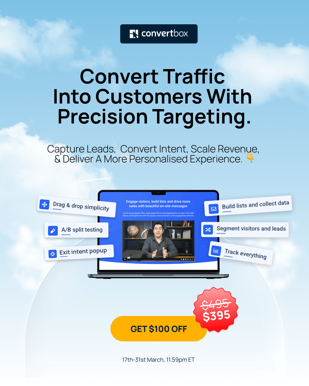 ENDS TOMORROW: $100 OFF CONVERTBOX If you're interested in maximizing your earning potential on your website, ConvertBox is currently running a special, and it's a good one as it's the biggest discount they've ever offered. This is one of those "one-time" aka "lifetime deal" purchases which is a little bit of an ouchie, but will seriously pay off in your business over time since there aren't any monthly recurring payments or additional fees. If you're not familiar with what ConvertBox does, it's a pop-up generator that helps to engage visitors, build lists and drive sales with personalized offers on your website. It works on platforms like Wordpress, ShowIt, Squarespace and more and integrates with 17 different email service providers such as ConvertKit, AWeber, Drip, ActiveCampaign, and more. Cool things you can do: